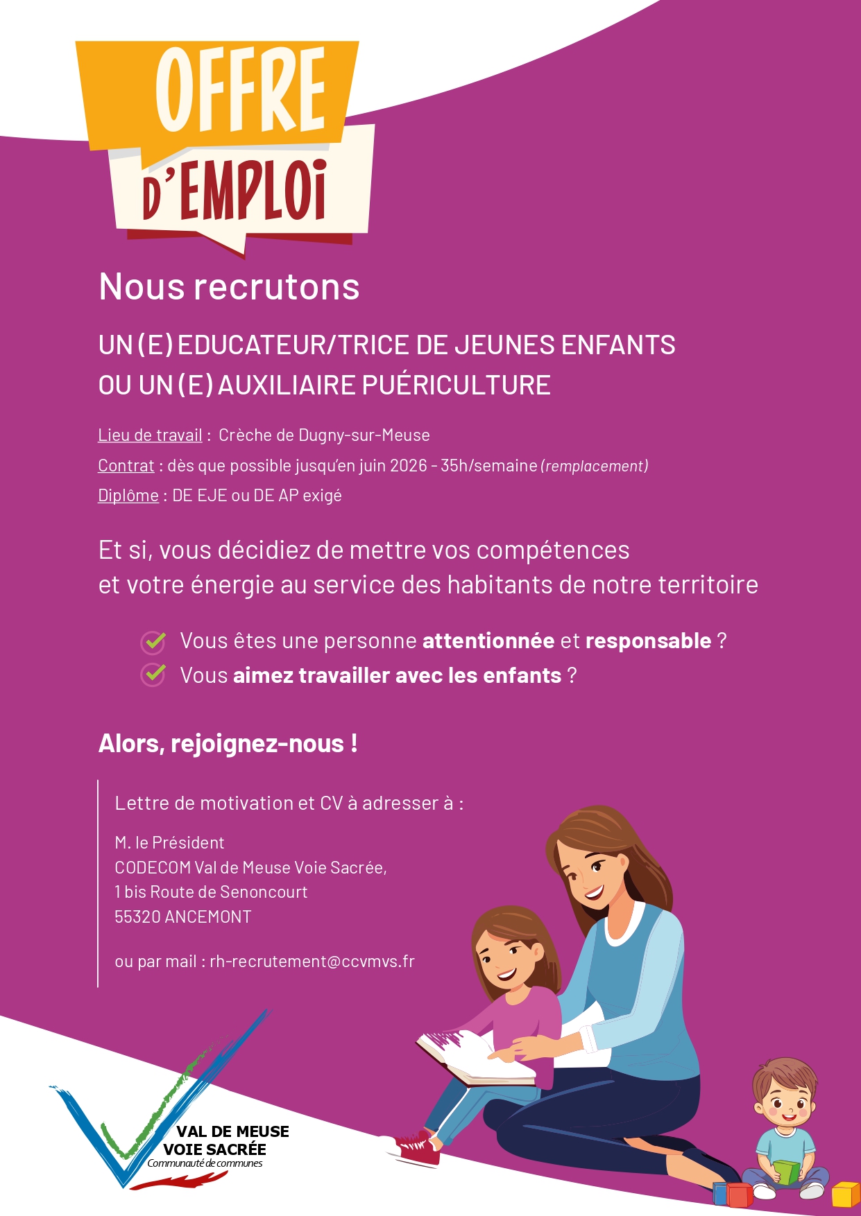 Lieu de travail : Crèche de Dugny-sur-Meuse