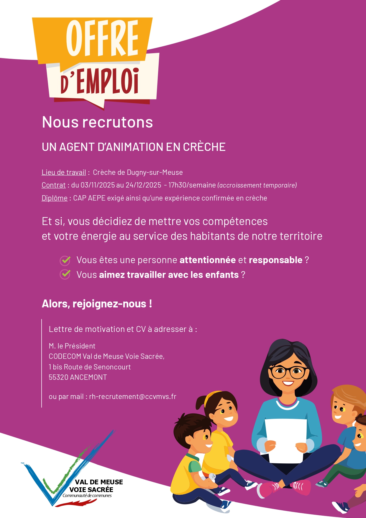 Lieu de travail : Crèche de Dugny-sur-Meuse