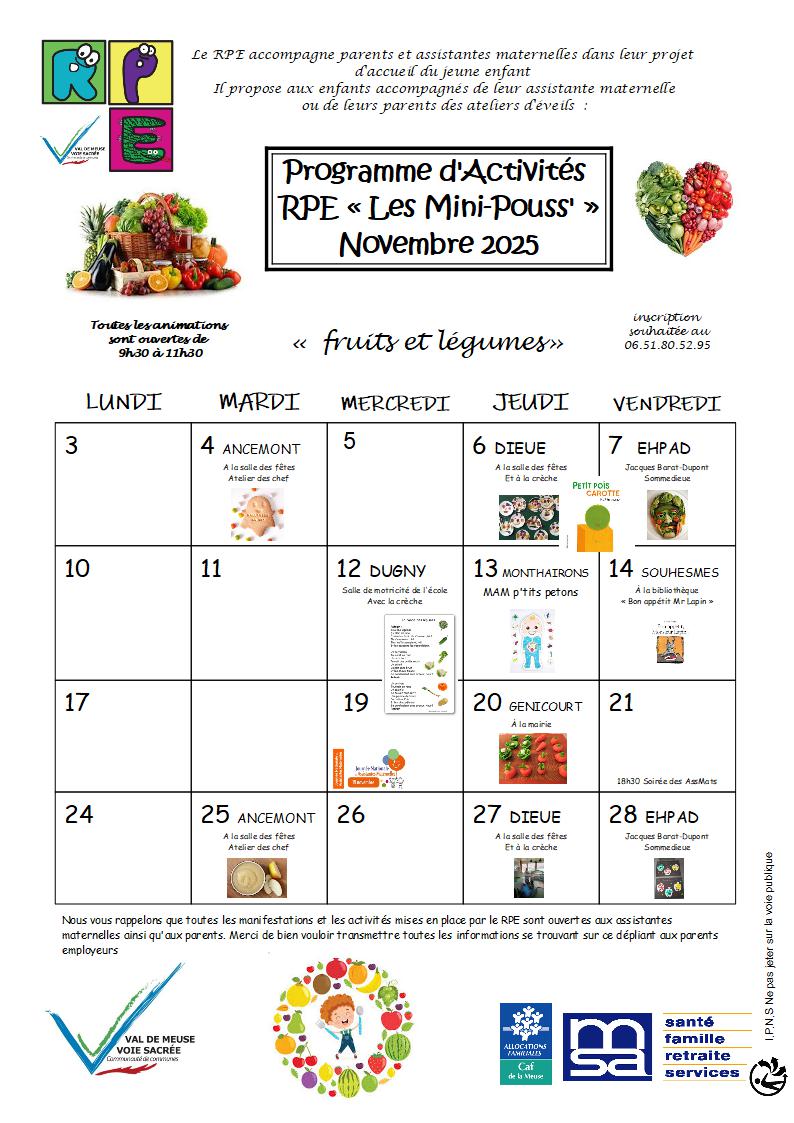 ois-ci, nous vous invitons à venir découvrir • Un kamishibaï coloré : « petit-pois carotte » de Morag HOOD, des comptines parfois mimées : 5 gros pois, Pomme de reinette, Les pommes, Savez-vous planter des choux ? La ronde des légumes, …, des jeux d’éveil et de manipulation sur le thème des fruits et légumes.