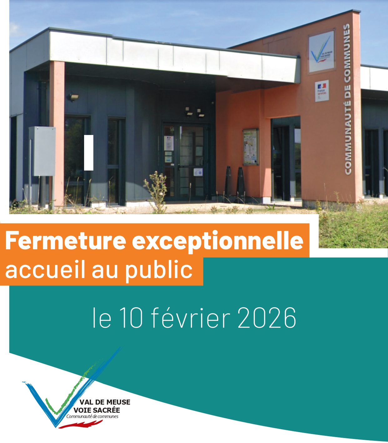 L'accueil de la Communauté de Communes sera exceptionnellement fermé le 10 février 2026.